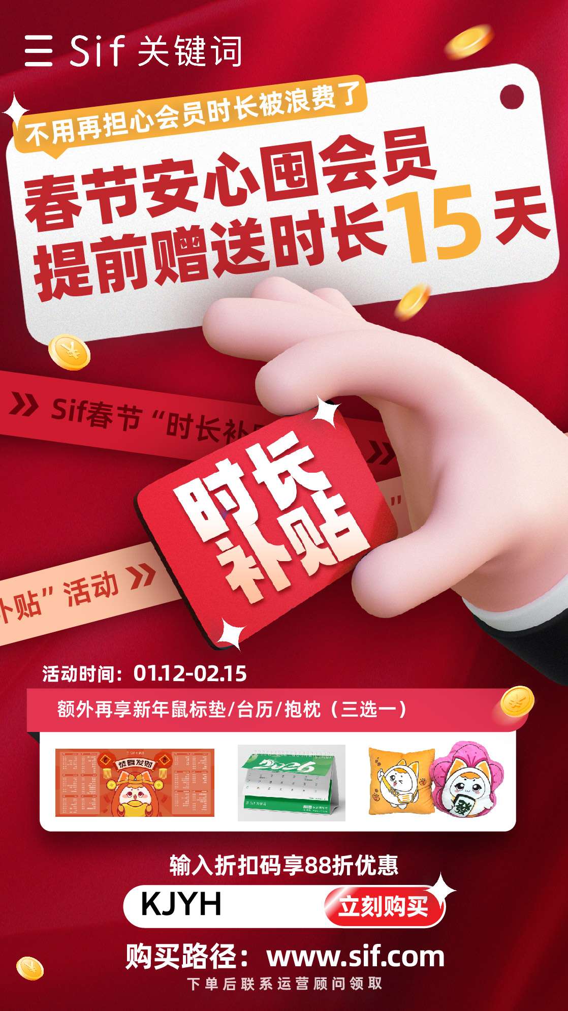2.马年奔腾,SIF护航 现在购SIF,补贴15天时长,再加赠好礼。 购买时输入专属折扣码:【KJYH】